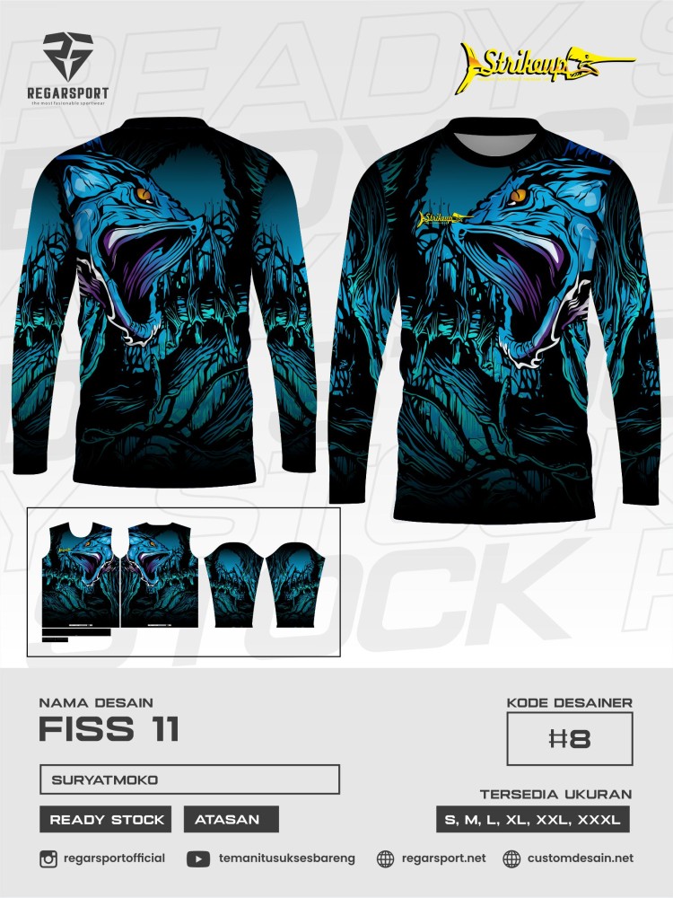 Jersey mancing lengan panjang gambar ikan